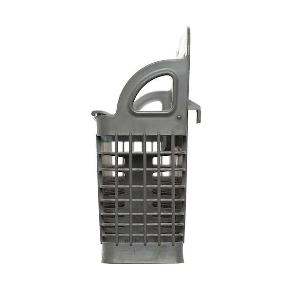 This KitchenAid Dishwasher Silverware Basket is used to keep spoons, forks, and knives separated and organized while in the dishwasher. The basket is placed in the lower dishrack. In matte light gray, this silverware basket has three hinged sections that can be opened to accommodate larger utensils.This product is a Factory Certified Part. These three words represent quality parts and accessories designed specifically for your appliance. Time tested engineering that meets our strict quality specifications. This product is a replacement part. Package contains 1 Dishwasher Silverware Basket. No tools required for installation