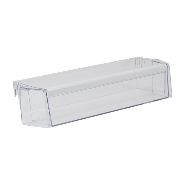 The SxS Refrigerator Door Shelf Bin is a clear plastic shelf with a white rim around the top edge. It attaches to the inside of the refrigerator door. The door shelf bin is used to hold jars and bottles that would take up space in the main section of the refrigerator. Replacing this part will require no disassembly of the appliance or repair experience.This product is a Factory Certified Part. These three words represent quality parts and accessories designed specifically for your appliance. Time tested engineering that meets our strict quality specifications. This product is a replacement part. Package contains 1 SxS Refrigerator Door Shelf Bin. No tools required for installation