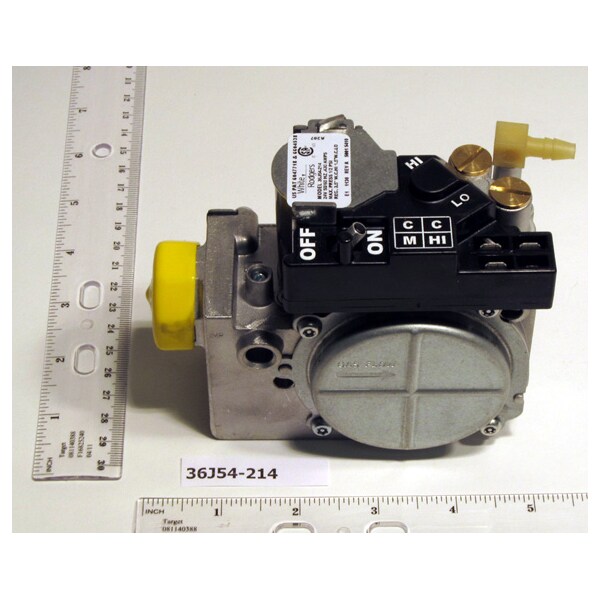 36J24-214 24Vac 1/2" X 1/2" Combination Gas Valve, Single Stage, Slow Opening, Inlet / Outlet Pressure Taps, Plastic Hose Barb (For Connection To Hose/Flexible Tubing), Lp Gas Conversion Kit, Inlet