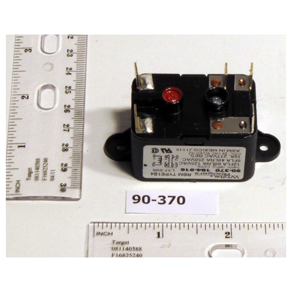 90-370 Fan Relay, Type 184, 24 Vac Coil, 50/60 Hz, Spdt. Coil Data: 77 Ohms Dc Resistance, 125 Ma (Nominal), 3 Va (Nominal), 4 Va (Inrush)