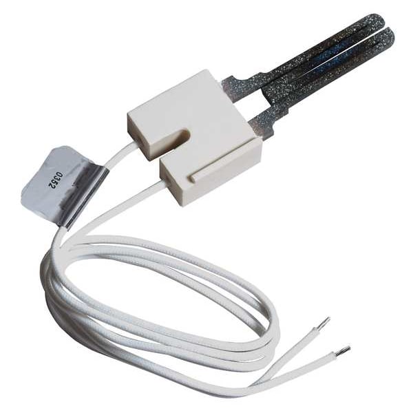 Hot Surface Igniter, Product Type Hot Surface Igniter, Replacement Type OEM, Heating Element Material Silicon Carbide, Electrical Connection Type Hardwired, Input Voltage 120V AC, Maximum Lead Wire Insulation Temperature 392 Degrees F, Lead Length 19 1/8 in, Probe Length 2 1/4 in, Tip Style Flat