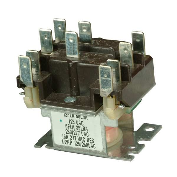 Magnetic Relay, Coil Voltage 115/120V AC, Contact Form DPDT, Current Rating 66 mA, Electrical Connection Quick-Connect, Number of Pins 6, Sealing Semi-Enclosed, Status Indicator No Indicator, Contact Rating (AC) 66 mA @ 125V, Horsepower @ 120V AC 1/2 hp, Horsepower @ 240V AC 1/2 hp, Mounting Style Universal, Body Depth 2.08 in, Body Height 1.86 in, Body Width 2.11 in, Coil Resistance 420 ohm, Compatible with Grainger Part Number 1N182, 2E852, 3TZ56