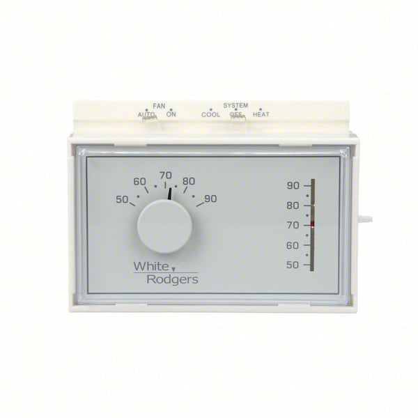 Low Voltage Thermostat, Terminal Designations A, B, G, O, RC, RH, W, Y, System Switching Heat-Cool-Off, Fan Switching Auto-On, Dual Transformer Compatible Yes, Power Method Hardwired, Voltage 20 to 30V AC, 750mV Compatible Yes, Mounting Horizontal, Height 3 1/4 in, Width 4 1/2 in, Depth 1 5/8 in, Color White, Control Range 50 Degrees to 90 Degrees F, Features Mercury Free, For Use With Heating, Cooling, Heat Pump without Auxiliary Heat, Millivolt, 3-wire Zone Valve