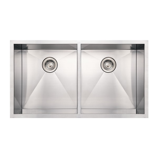 Noah's Collection Stainless Steel Sinks are unsurpassed in quality and design. Whitehaus Collection has constructed these sinks from 16, 18, and 20 gauge, 304 stainless steel with an 18/8 chrome and nickel content. The benefit of this quality stainless steel ensures them to be scratch, stain and chip resistant. Many of our sinks are equipped with zero radius corners and full undercoat over noise reduction dampening pads, ensuring a quieter and easier clean up, making it one of the most durable sinks on the market. Noah’s Collection adds beauty to its durability by using a fine brushing technique that enhances the sheen and luster of the final product. The four diagonal grooves integrated into the sink are made to channel water directly to the drain. Available in single or double bowl models for under mount, drop-in or front apron application, your choice of any of our sinks will leaving a lasting impression in your kitchen. The two bowls are equal in size and depth and double your ability to multitask.