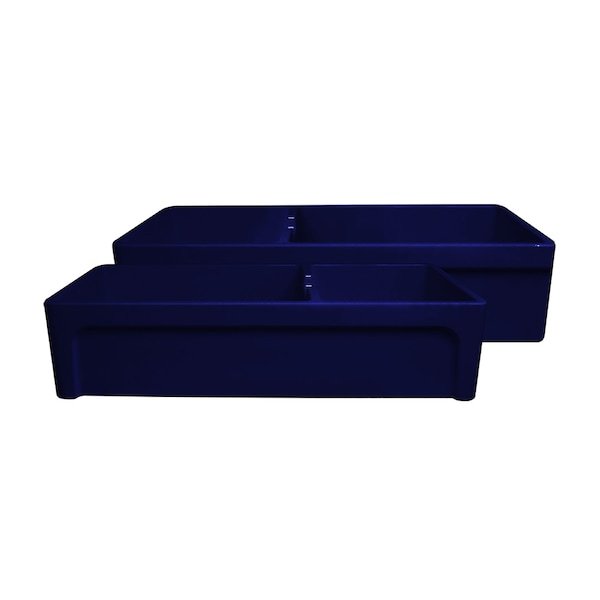 Farmhaus Fireclay Large Reversible Sink And Small Bowl, Sapphire Blue