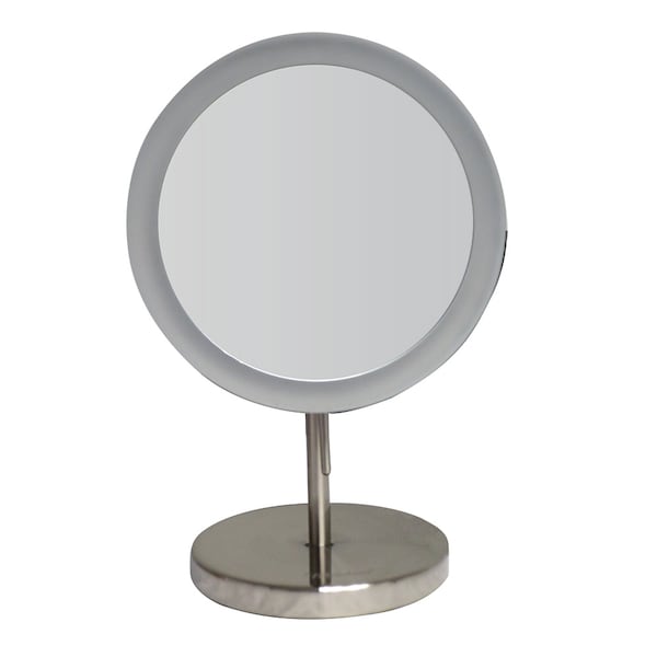 Round Freestanding Led 5X Magnified Mirror, Brushed Nickel