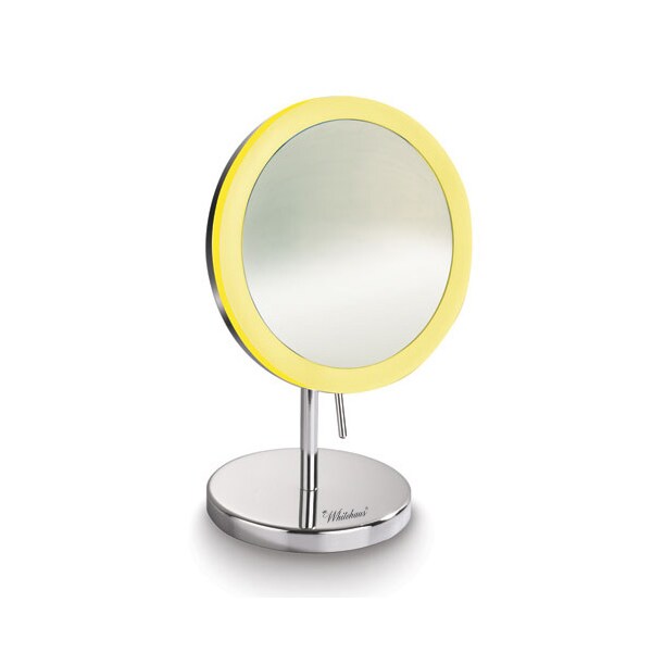 Whitehaus Collection’s Free-Standing Round Mirror with LED lighting and 5x magnification offers you a sleek and modern look, while providing close-up magnification. Perfect for a bath or dressing room, this versatile mirror has all the features you need to look your best. An on/off flip switch on the cord will activate the LED lighting around the perimeter of the mirror when you need it and the 5x magnification mirror pivots so you can be sure every detail is in place. This high quality round vanity mirror easily moves to any room and fits onto any counter. Available in your choice of either polished chrome or brushed nickel