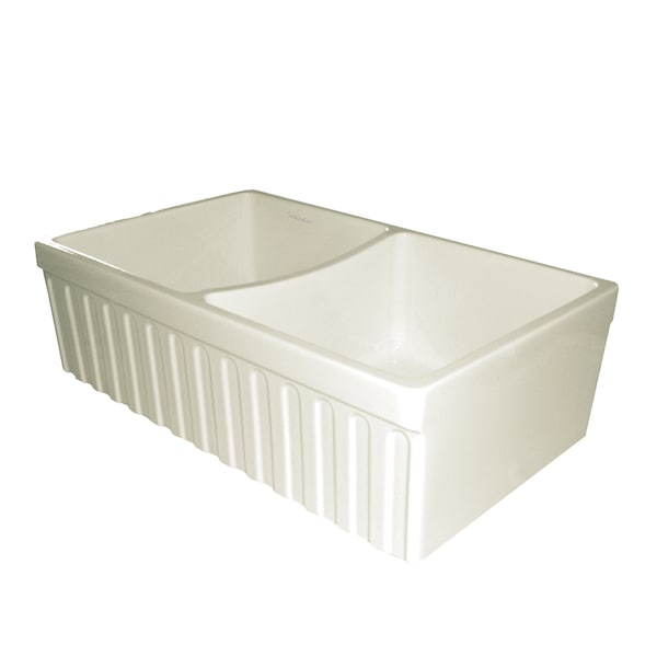 Whitehaus Collection is an industry leader, offering the widest selection of fireclay sinks in the market. Every sink is handmade from natural clay, molded, and then baked into an elegant, smooth and glossy finish. Proven to be durable and resistant to extreme temperatures fireclay sinks are visually appealing and timeless in design. The 33" Quatro Alcove reversible double bowl fireclay sink with fluted front apron and 2" lip on one side and 2 1/2" on the other is featured here in your choice of White, Biscuit, Black or Sapphire Blue.