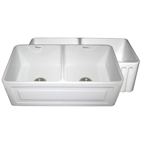 Whitehaus Collection offers the widest selection of fireclay sinks on the market today. Every sink is handmade from natural clay, molded, and then baked into an elegant, smooth and glossy finish. Being eco-friendly and lead free only adds to the allure of Farmhaus Fireclay sink. Proven to be durable and resistant to extreme temperatures fireclay sinks are visually appealing and timeless in design. Whitehaus Collection’s patented, eco-friendly, Farmhaus Fireclay sinks are available in a variety of colors and designs and will complete the look in any kitchen. The Whitehaus Collection 33" Reversible Double Bowl fireclay sink with a raised front panel apron on one side and a fluted front apron on the opposite side featured here in your choice of White, Biscuit, Black and Sapphire Blue.
