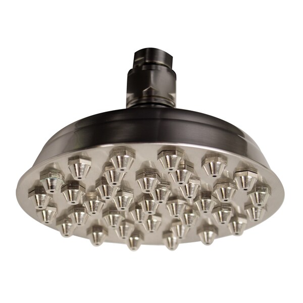 Whitehaus Collection's Showerhaus Showerheads assist you in creating the ultimate shower spa in the comfort of your home. Bring rejuvenation to the next level with this solid brass 6" small sunflower rainfall showerhead with 37 easy to clean nozzles and adjustable ball joint in brushed nickel and polished chrome.