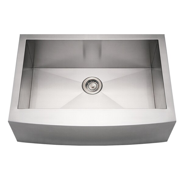 Noah's Collection Stainless Steel Sinks are unsurpassed in quality and design. Whitehaus Collection has constructed these sinks from 16, 18, and 20 gauge, 304 stainless steel with an 18/8 chrome and nickel content. The benefit of this quality stainless steel ensures them to be scratch, stain and chip resistant. Many of our sinks are equipped with zero radius corners and full undercoat over noise reduction dampening pads, ensuring a quieter and easier clean up, making it one of the most durable sinks on the market. Noah’s Collection adds beauty to its durability by using a fine brushing technique that enhances the sheen and luster of the final product. Available in single or double bowl models for under mount, drop-in or front apron application, your choice of any of our sinks will leaving a lasting impression in your kitchen. Noah's Collection Commercial Series single bowl front arched apron sink has four diagonal grooves integrated into the sink, made to channel water directly to the drain.