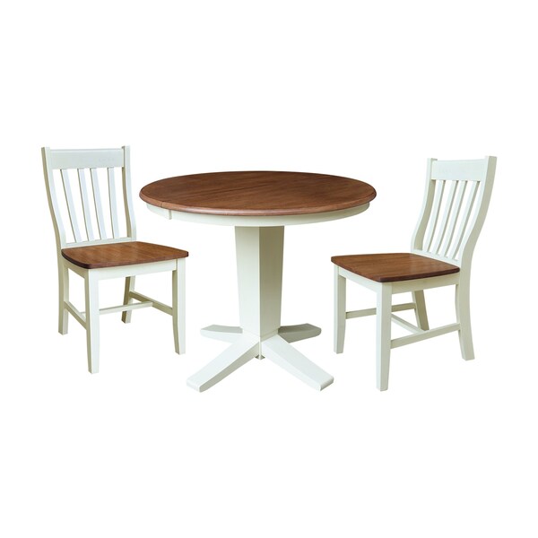 - Invest in this exceptional 3-piece dining set, which includes a durable solid wood table and two chairs, perfect for any dining space!