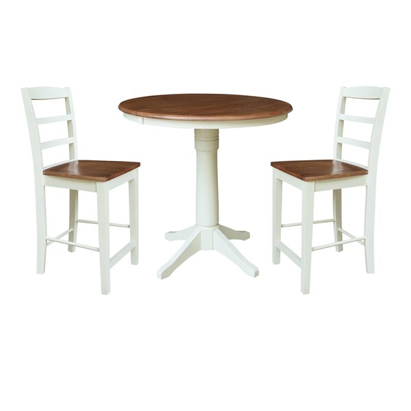 Create extra space when needed in your kitchen or dining room with this extension dining table set from International Concepts. This versatile table is crafted from solid wood and is part of a high-quality collection of wood furniture that will easily complement any style. Parawood - a hardwood known for its durable, strong, and environmentally friendly nature - is used to craft these traditional tables. This table easily pulls apart on metal glides allowing you to insert a 12-inch leaf, adding to your dining space and accommodating additional guests. The table pairs well with these counter height bar stools from the International Concepts solid wood seating collection. Whether you are enjoying a cup of coffee, a daily lunch, or a Sunday dinner, you will have this extension table to appreciate for years to come.