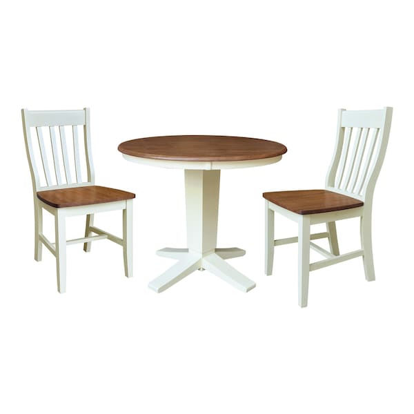 Rectangular Fixed Top Table W/ 2 Chairs, 36 in W, 29.9 in L, 36 in H, Parawood, Hickory/Shell, 3