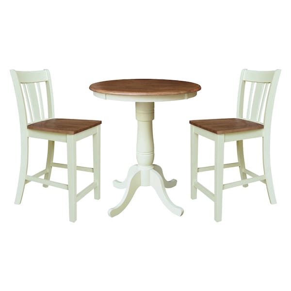 Rectangular Fixed Top Table W/ 2 Stools, 30 in W, 35.1 in L, 30 in H, Parawood, Hickory/Shell