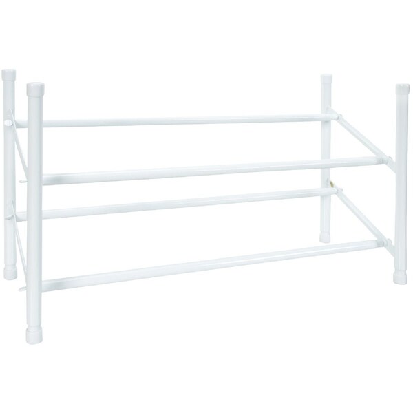 2-tier expandable and stackable. Easy assembly. Durable steel construction. Fits comfortably under hanging clothes. Expands from 24 to 45.
