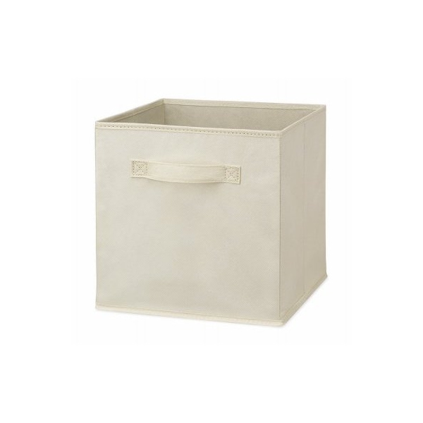Whitmor collapsible storage cube natural latte color durable poly cotton fabric cutout handles PDQ 10.5 L x 10.5 W x 11 H inches.