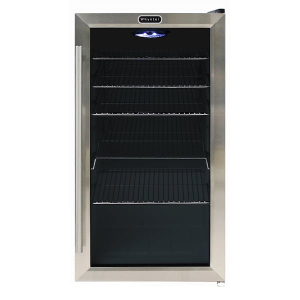 The Whynter 120 Can Stainless Steel Beverage Refrigerator with internal fan is the ideal choice for compact and efficient beverage display and refrigeration. The Whynter Beverage Refrigerator / Cooler offers a compact and powerful cooling solution ideal for your entertaining or retail merchandising needs. Unlike many budget beverage refrigerators, the Whynter 120 Can Stainless Steel Beverage Refrigerator utilizes premium features and design to provide a sleek showcase that will be centerpiece of any space. With its powerful compressor and internal air-cooled system, this beverage refrigerator creates an evenly-cooled space ensuring consistent temperatures throughout the beverage refrigerator.