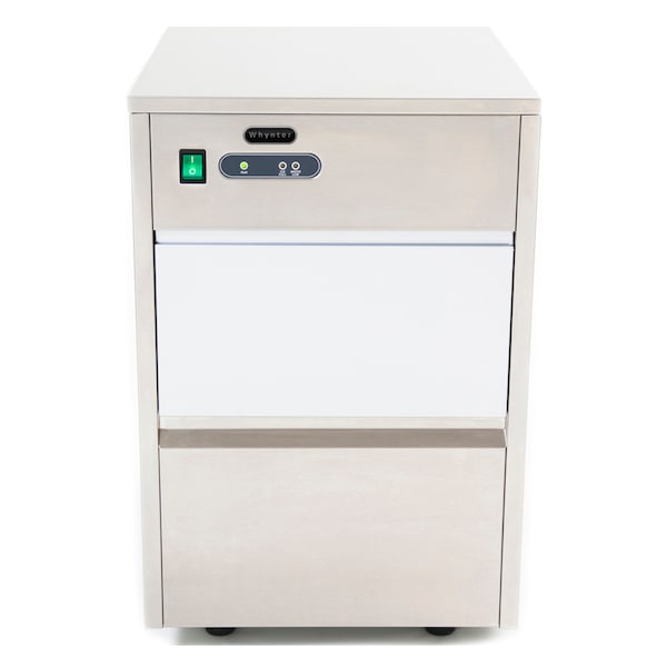 With the Whynter FIM-450HS Ice Maker, you can produce up to 44 lbs of ice per day, while buffering up to 7.7 lbs of ice; making this ice maker the perfect solution for convenient and fresh ice. This efficient direct plumbing ice maker allows you a constant supply of bullet-shaped ice at a much higher rate relative to manual fill ice makers. When entertaining guests or just for daily use, never again have to wait or rush to the store to purchase overpriced ice. Attractive and compact, this full stainless steel exterior ice maker is a great highlight to any space and fits easily were needed the most. **For installation, please consult a professional plumber.