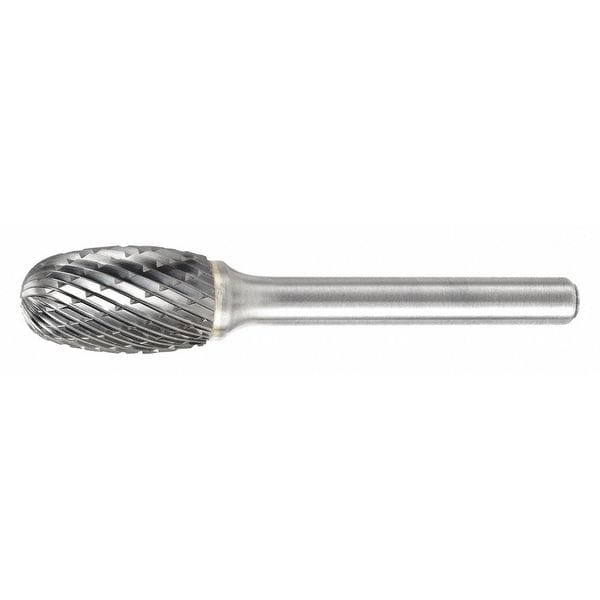 Carbide Bur, End Type Radius, Cut Type Double, Shank Dia. 1/4 in, Head Dia. 5/8 in, Head Length 1 in, Included Angle Not Applicable, Overall Length 2 3/4 in, Trade Number SE-06, Head Shape Oval, System of Measurement Inch, Shank Material Steel