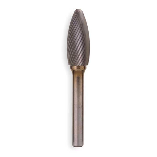 Carbide Bur, End Type Pointed, Cut Type Single, Shank Dia. 1/4 in, Head Dia. 5/16 in, Head Length 3/4 in, Included Angle Not Applicable, Overall Length 2 1/2 in, Trade Number SH-2, Head Shape Flame, System of Measurement Inch, Shank Material Steel