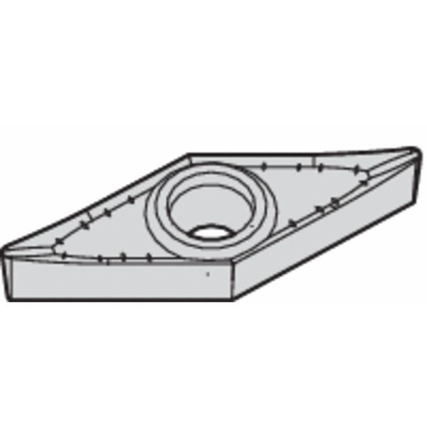 Diamond Turning Insert, Chip-Breaker Code AL3, Inscribed Circle 1/4 in, Bright (Uncoated), ANSI Code VCGT2205AL3, Chip-Breaker Style On One Side, Clearance Angle 7 Degrees