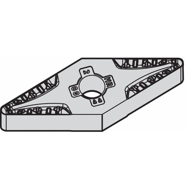 Diamond Turning Insert, Chip-Breaker Code MR, Inscribed Circle 3/8 in, TiN, ANSI Code VNMG332MR, Chip-Breaker Style On Two Sides, Clearance Angle 0 Degrees