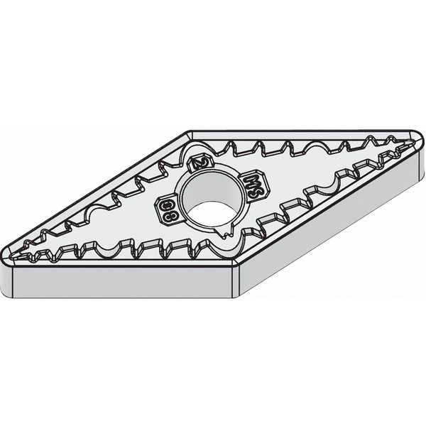 Diamond Turning Insert, Chip-Breaker Code MS, Inscribed Circle 3/8 in, ANSI Code VNMG332MS, Chip-Breaker Style On Two Sides, Clearance Angle 0 Degrees