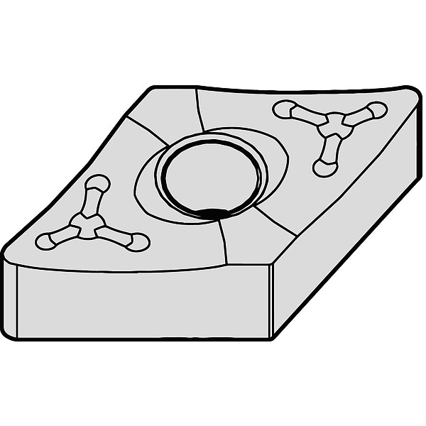 Diamond Turning Insert, Chip-Breaker Code 65, Inscribed Circle 1/2 in, Al2O3, ANSI Code DNMM44365, Chip-Breaker Style On One Side, Clearance Angle 0 Degrees