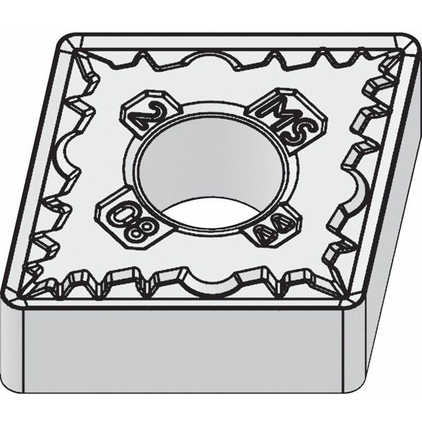 Diamond Turning Insert, Chip-Breaker Code MS, Inscribed Circle 5/8 in, ANSI Code CNMG543MS, Chip-Breaker Style On Two Sides, Clearance Angle 0 Degrees