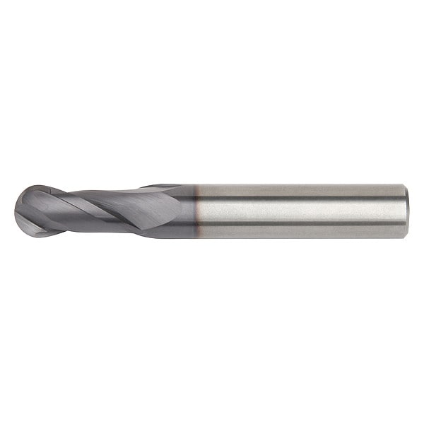 Ball End Mill, 0.625 in Milling Dia., Carbide, TiAlN, Non-Coolant Through