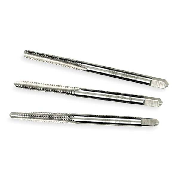 Tap Set, Tap Thread Size #6-32, High Speed Steel, Bright (Uncoated), Thread Standard UNC, Thread Length 11/16 in, Overall Length 2 in, Thread Limit H3, Class of Fit Not Applicable, Thread Direction Right Hand, Number of Flutes 3