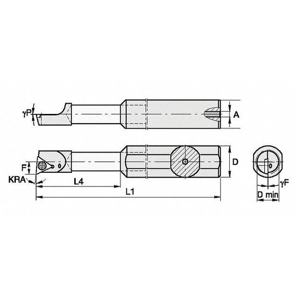 Indexable Boring Bar, Insert Shape Triangle, Overall Length 3 in, FCBI312500155R, 95 Degrees , 0.1870 in, T7 Insert Screw, Coolant Through, Turning, Right Hand