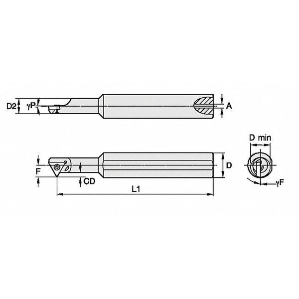 Indexable Boring Bar, SSII750860R, 8 in L, High Speed Steel, Triangle Insert Shape