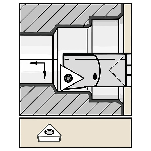 Indexable Thread Turning Tool Holder, Insert Style TC.., Left Hand, Inside Diameter Chamfering and Profiling, ANSI Code E16RSTFCL16, Center to Cutting Tip 0 in, Coolant Fed Coolant Through