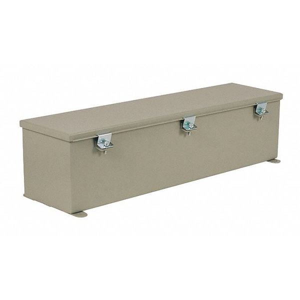 Trough and cover fabricated from 14 gauge steel. Continuously welded seams ground smooth, less knockouts or holes. Oil resistant gasket and adhesive are provided. Trough comes complete with easy to operate external clamps and a continuous hinge. External mounting feet are provided.