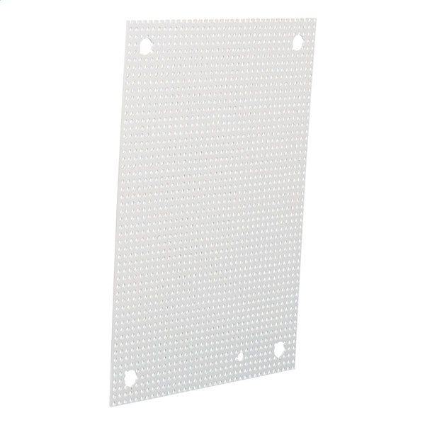 Fabricated from carbon steel; Painted with white polyester powder; Perforated panels accept self-tapping screws which eliminates the need to measure, mark, and drill when mounting components