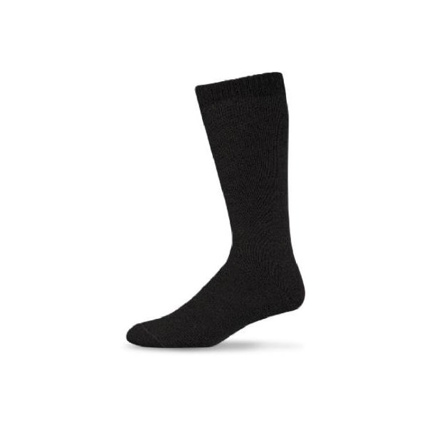 Extra Large Size, Black, Full Cushioned Thermal Boot Sock, 1x1 Mock Rib Welt Top, Smooth Loop Toe Seam, Boot Length Is Proportional To Size, 50 Wool, 48 Nylon, 2 Spandex, Temperature Rated For Cold Weather