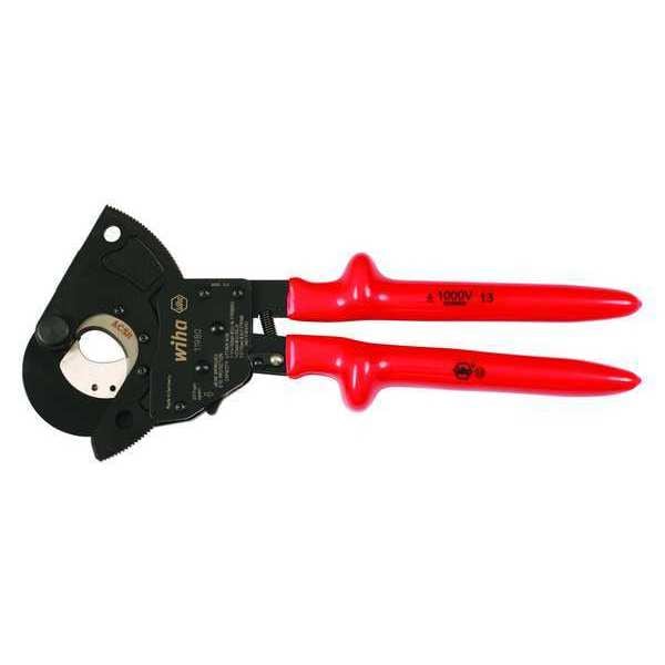 Cable Cutter, Cutting Action Shear, Features Double Covered Insulation Red Over Yellow, For gripping and holding pipes and angula, High Quality forged Tool, Protective Insulation Molded Directly onto the Handle, Steel Hardened Cutting Edges and Jaws, With Handle Slip Guard for Additional Protection, For Maximum Diameter ACSR Conductor 477 kcmil, For Maximum Wire Thickness ACSR : 477 MCM, Solid Copper : 1 in, Stranded Copper/Aluminum : 1.25 in, Handle Color Red, Handle Style Dipped