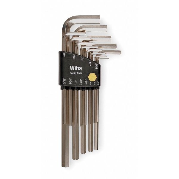Hex Key Set, Tip Size 1/16 in, 1/4 in, 1/8 in, 3/16 in, 3/32 in, 3/64 in, 3/8 in, 5/16 in, 5/32 in, 5/64 in, 7/32 in, 7/64 in, 9/64 in, Nickel-Plated, 13, Holder, Long, Hex, 1, No, 3 in to 6 15/16 in, Yes, No
