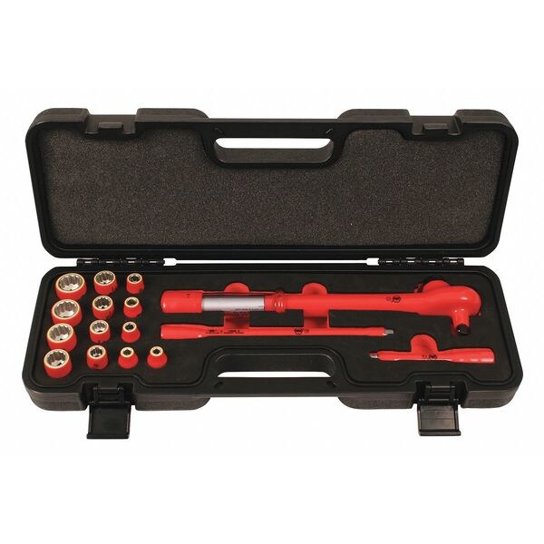 (16) Socket: 8mm, 9mm, 10mm, 11mm, 12mm, 13mm, 14mm, 15mm, 16mm, 17mm, 18mm, 19mm, 20mm, 125mm and 250mm; Extension Bars; 3/8" Drive Ratchet Torque Wrench: 5 to 50 Nm and 4 to 37 Ft./lb.