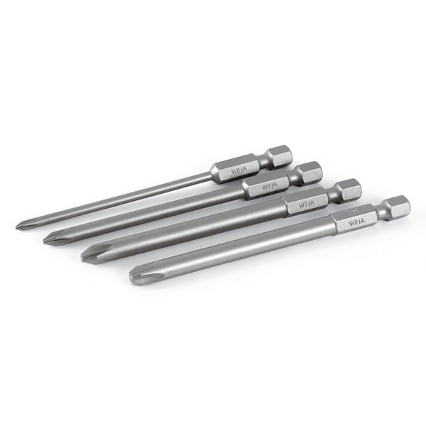 PH 90mm Power Blades sizes: #0 #1 #2 #3 Wiha Power Blades are the standard for premium quality driver blades featuring Wiha engineered premium quality tool steel for strength and durability with exact fit precision machined tips for reduced cam-out, standard 1/4 hex drive for universal application, and are have a 90mm blade length for use in Wiha Power Blade handles.Set Includes: Phillips 90mm #0 #1 #2 #3Exact fit precision machined tip for reduced cam-outStandard 1/4 hex drive for universal application90mm blade length for use in Wiha Power Blade handlesMade Of Wiha Premium CVM Tool Steel