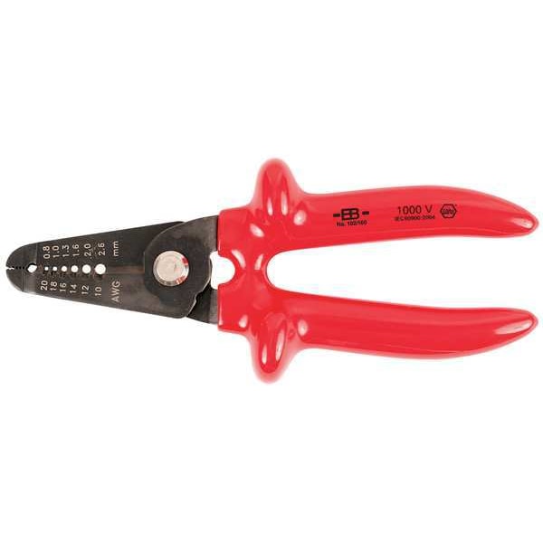 Wire Stripper, Stripping Capacity - Solid Wire 10 AWG, 12 AWG, 14 AWG, 16 AWG, 18 AWG, 20 AWG, Stripping Capacity- Cable 10 to 20 mm, Stripping Capacity- Stranded Wire 10 AWG, 12 AWG, 14 AWG, 16 AWG, 18 AWG, 20 AWG, Type Electrical Wire Strippers, For Wire/Cable Type Solid Wire, Stranded Wire, Cutting Capacities 20 to 10 AWG, Handle Style Standard, Insulated Yes, Voltage Rating 1,000 V, Adjustment Mechanism None, Application Stripping