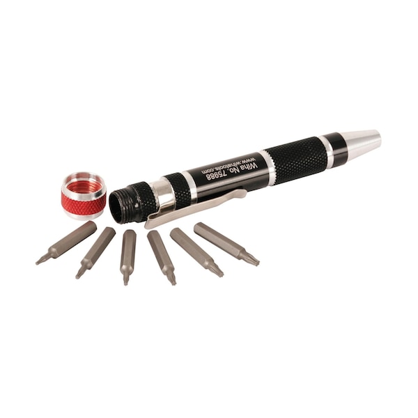 MicroBit Pocket Clip Set with Torx T3 - T8 Micro Bits, Magnetic Bit Holder and Aluminum Storage HandleMagnet Bit Holder, Aluminum Barrel Handle With Pocket Clip6 Bits With Aluminum Storage HandleHandle Over all Length 110mm / 4.3LongWiha CVM Special Tool Steel, Hardened HRC60