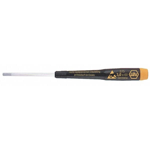 ESD-Safe Precision Hex Screwdriver, Tip Size 2.5 mm, Hex, Molded, Overall Length 6 1/2 in, ESD Safe Yes, Non-Sparking No, Non-Magnetic Yes, Insulated No, Corrosion Resistant Yes, No, Tip Finish Chrome, Shank Coating None