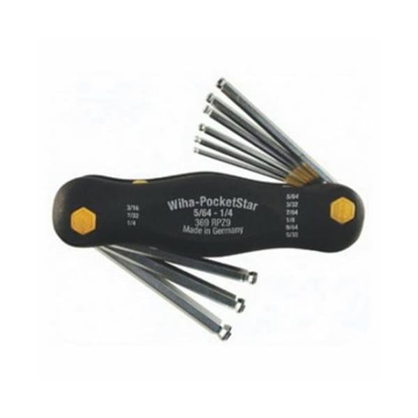 WIHA KEY SET, MEASUREMENT SYSTEM: IMPERIAL, 9 PIECE, 5/64 TO .25 HEX, ERGONOMIC HANDLE, CHROME VANADIUM MOLYBDENUM TOOL STEEL