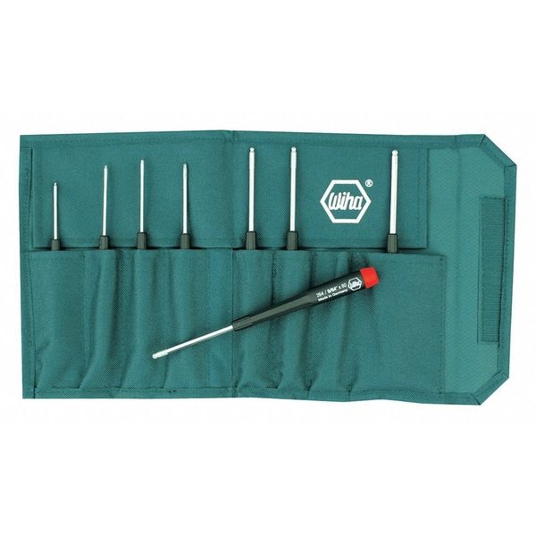 Precision Screwdriver Set, Tip Finish Chrome, 1/16 in, 1/8 in, 3/32 in, 3/64 in, 5/32 in, 5/64 in, 7/64 in, 9/64 in, Hex, Ergonomic, Number of Pieces 8, No, ESD Safe No, Non-Sparking No, Measurement Type SAE, Includes Canvas Storage Pouch, Corrosion Resistant Yes, Tether Ready No, Range of Shank Lengths 1 5/8 in to 2 3/8 in