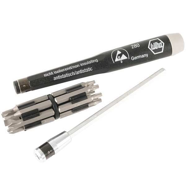 Multi-Bit Screwdriver, Tip Size #0, #00, #1, 1.5 mm, 2 mm, 2.5 mm, 3 mm, T10, T15, T20, T6, T7, T8, T9, Tip Style Phillips, Slotted, Torx, Friction Hold, Cushion, Bit Material Chrome Vanadium Molybdenum Steel, Bit Storage In Handle, Single End, Magnetized Tip No, Shank Length 1 1/8 in, Shank Material Alloy Steel, Drive Size 4 mm, ESD Safe Yes