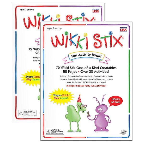 Activity Book includes 72 Wikki Stix to make fun activities mistake-free! Easy to use Wikki Stix provide hands-on engagement for matching, counting, shapes, letters, numbers in sequence and simple free-form art. Each book includes 28 pages. Sold as 2 books.