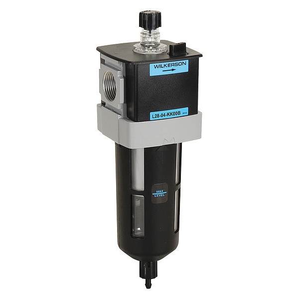 Compressed Air Lubricator, Lubricator Type Micro Mist, Lubricator Bowl Material Plastic, Air Inlet Size 3/8 in, Air Inlet Type NPT, Maximum Flow Rate 110 cfm, Maximum Operating Pressure 150 psi, Maximum Operating Temperature 125 Degrees F, Adjustment Mechanism Knob, Body Material Aluminum, Overall Width 2 7/8 in, Series L28, Sight Dome Included Yes, Sight Gauge Included Yes, Air Outlet Size 3/8 in, Air Outlet Type NPT, Drain Included Yes, Drain Part Compatibility LRP-96-702, Drain Type Manual